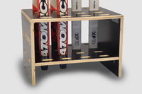- Pratico: il portasci da fondo viene consegnato già montato. I supporti possono essere facilmente collegati tra loro con dadi ad alette. Realizzato in compensato laminato da 12 mm di spessore. Dimensioni del supporto per 8 paia: 37 x 27 cm.