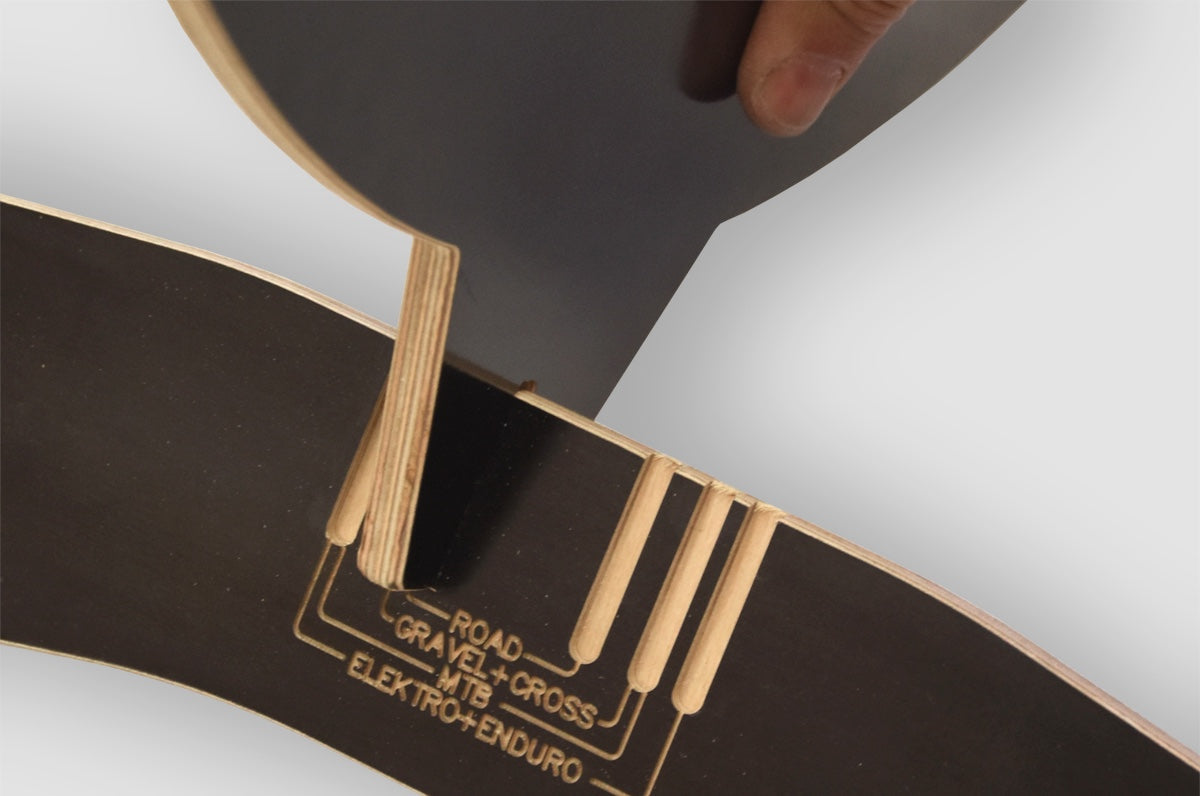 - Fatto da noi. Il portabiciclette è realizzato direttamente nella nostra officina in compensato di spessore 9 mm.