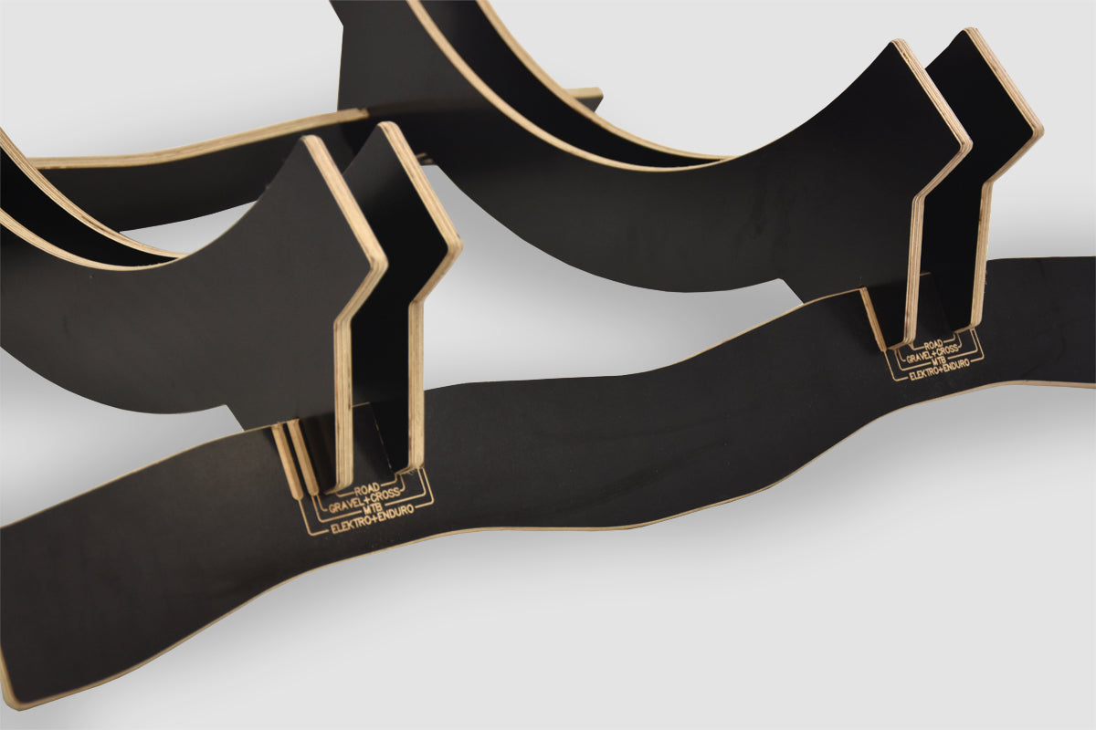 - Fatto da noi. Il portabiciclette è realizzato direttamente nella nostra officina in compensato di spessore 9 mm.